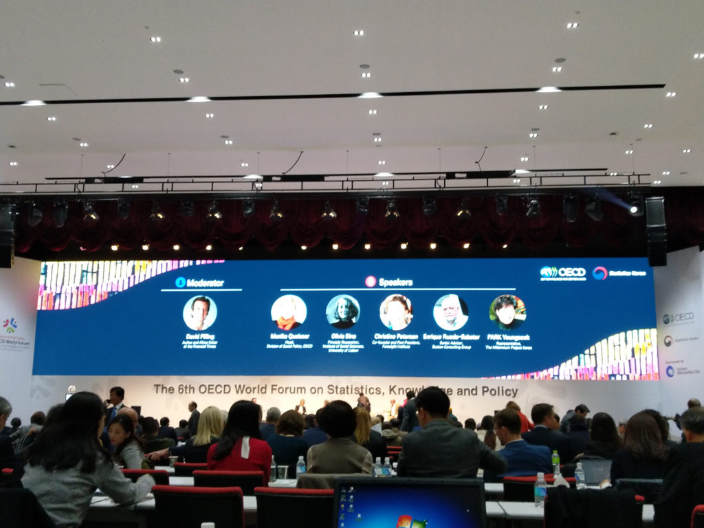 11/27から3日間にわたって開催されたOECD Forumに参加するため、前日にインチョン入りした。初日の午前中、遠隔で講座会議に参加していたため、開会行事の途中からの出席となった。今回のForumのテーマは、”the Future of Well-being”である。