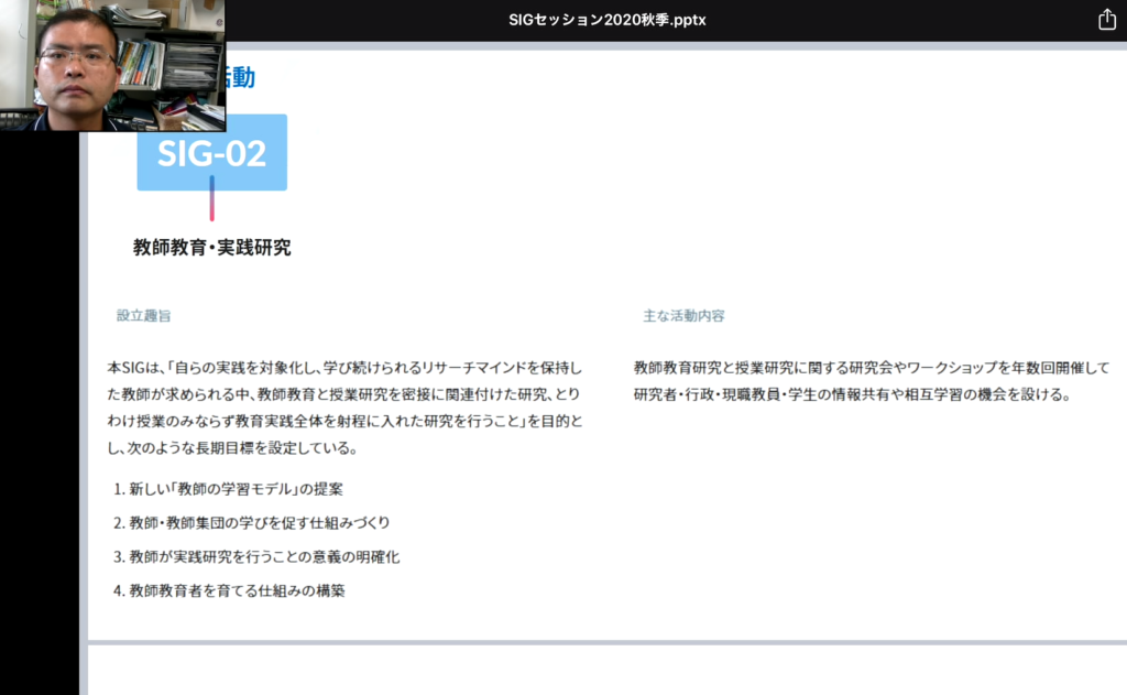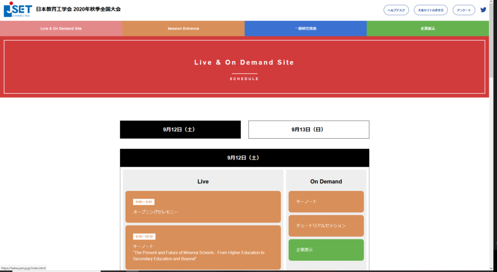 9/12-13は、日本教育工学会全国大会であった。フルオンラインでの初めての大会であり、2日間大学の研究室から参加した。大会に関する情報は全てWebページに一元化されており、そこにアクセスするだけで参加できたことは大変便利だった。
