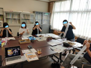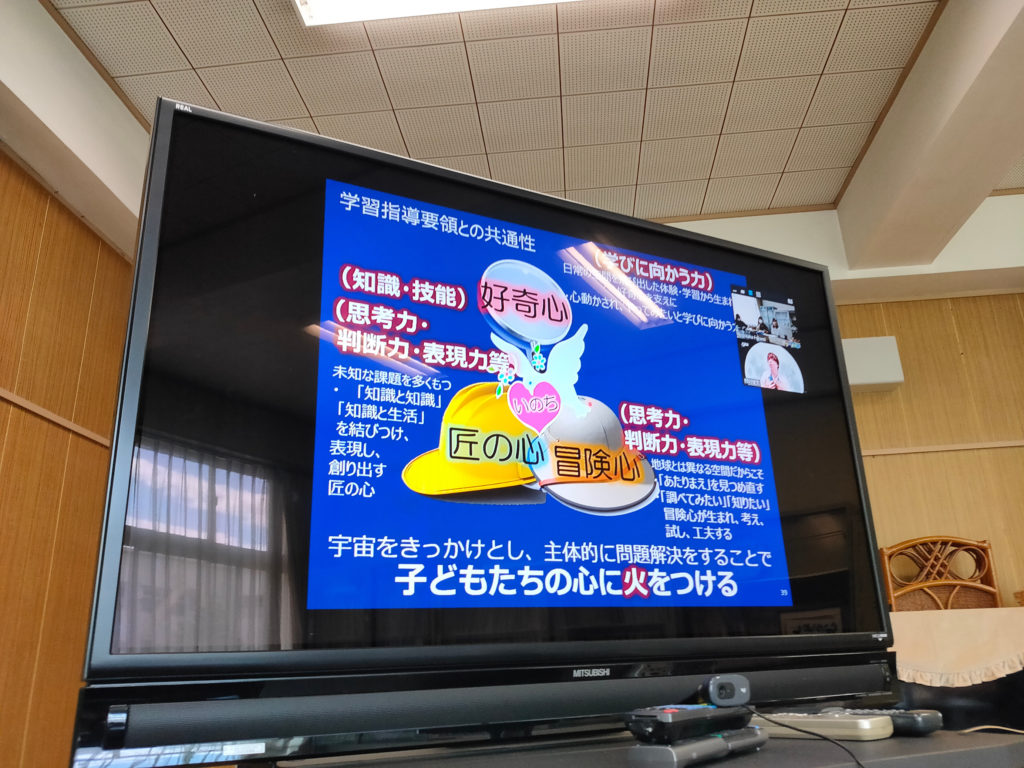 秋からの幼児教育における宇宙教育実践に備えて、附属幼稚園でJAXAによるオンライン研修を行った(写真1)。今回の研修は、JAXAがこれまで主に対面で行ってきたものをZoomを用いて行う形であった。副園長を含む6名の附属幼稚園の職員に集中して受講してもらうため、Zoomの接続や現地で行うグループワークのサポートは私が全面的に担った。