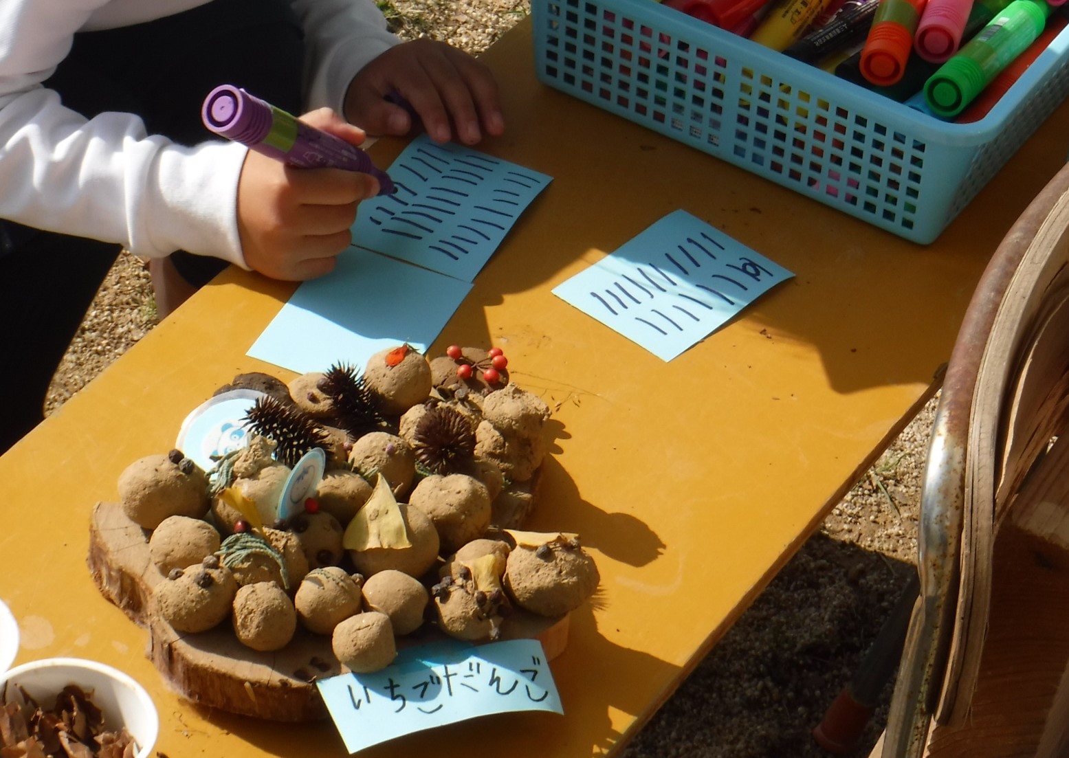 共同研究者としては、(行事がこれまで連続していたこともあるが)単発の遊びになっていて、持続的な広がりや深まりがあまり見られなかったので、公開研究会までにそれらが参観者に見られるように遊びを見守ってほしいとお伝えした。
