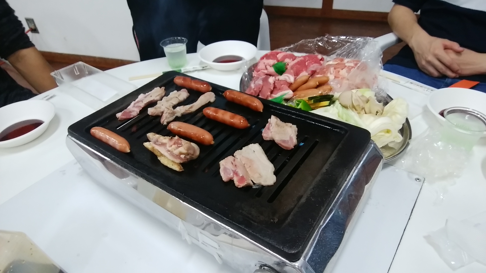ディナーはバーベキューであった。雨のため室内だったが、2年間空いていたのでまあ良かっただろう(一昨年はコテージが取れず、昨年は大雨でバーベキューはキャンセルに)。